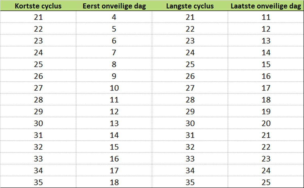groen – onvruchtbare dagen