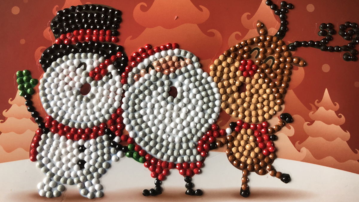 De sets zijn volledig compleet en bestaan uit: een pennetje, een waxtablet, plastic zakjes, een bakje en de gekleurde diamantjes. De kaart is voorbedrukt met speciale lijm en afgeschermd met een folie. Er zijn overigens verschillende ontwerpen en maten. Deze is natuurlijk hartstikke leuk voor de feestdagen, maar er zijn nog veel meer leuke thema’s.