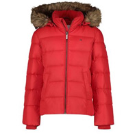 Tommy Hilfiger winterjas met afneembare capuchon voor meisjes in de kleur rood. Deze met dons gewatteerde winterjas, gemaakt van winddichte polyester, komt uit de Tommy Hilfiger winter collectie en sluit met een ritssluiting. Aan de voorkant paspelzakken met drukknoopsluiting en linksvoor een klein geborduurd Tommy Hilfiger logo. De uiteinden van de mouwen hebben elastische boorden en de nepbont rand is van de capuchon te verwijderen. Bovendien is de jas gevoerd met polyester. Heerlijk warm voor de meest koude winterdagen!