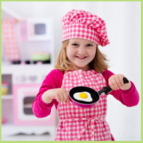 Kinderen kopiëren graag, dus alles wat wij doen, willen zij ook graag doen. Het geeft ze een gevoel van gelijkwaardigheid, hetzelfde zijn en erbij horen. Dus als wij gaan koken, willen zij dat eigenlijk ook. In de echte keuken is dat een tikkeltje gevaarlijk, maar als ze nou eens een eigen keuken zouden hebben. Een veilige keuken, waar je wel mama of papa kunt nadoen, maar dan zonder risico’s.