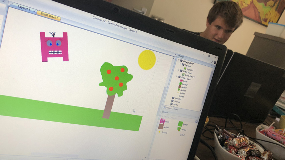 De introductieworkshop is vooral bedoeld voor kinderen om te kijken of het maken van games iets voor ze is. Je kunt er dan een beetje aan proeven of ruiken, zonder dat er echt de diepte in wordt gegaan. Je leert de basis van de software Construct 2: het aanmaken van een figuurtje (sprite) en het toevoegen van een gedrag of actie (behavior). Je kunt op die manier een heel eenvoudig spelletje maken.