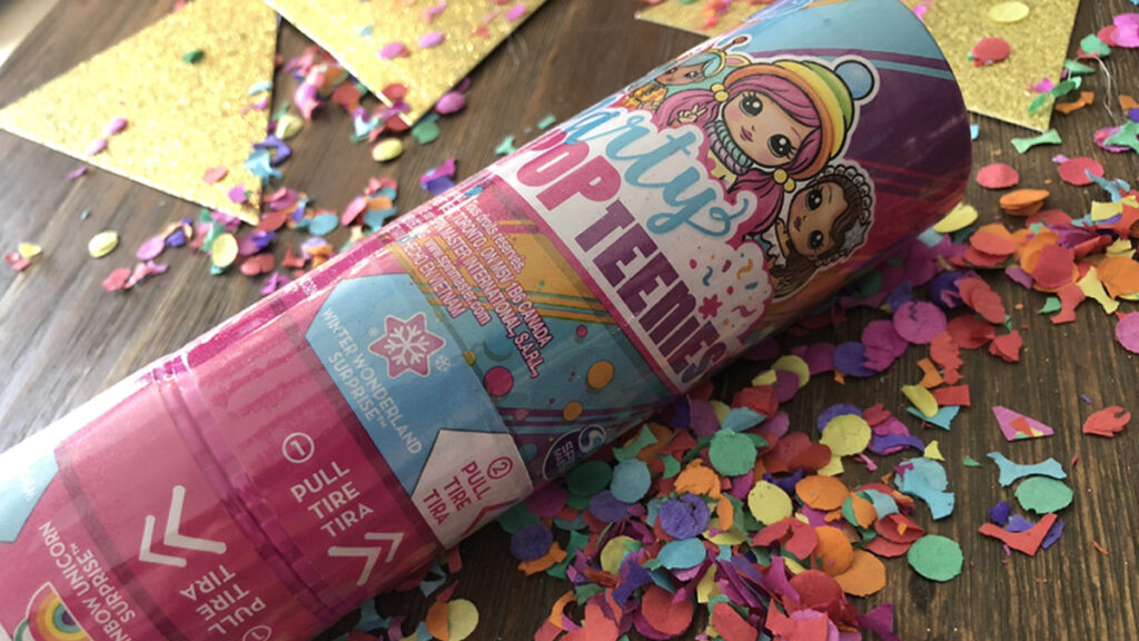 Eerst maar eens uitleggen wat Party PopTeenies zijn, want misschien kun jij het ook niet helemaal goed uit het filmpje halen. Party PopTeenies zijn vrolijke verzamelpoppetjes, die – middels een simpele draaibeweging – uit de koker komen knallen. Dit doen ze met vooral veel slingers en confetti. Eigenlijk zijn de kokers een soort confettikanonnen. Ze doen mij ook een beetje denken aan de partycrackers die wij altijd laten knallen tijdens het kerstdiner. Een superleuke traditie uit Engeland. Alleen zitten in de Party PopTeenies, dus super schattige bontgekleurde meisjes.