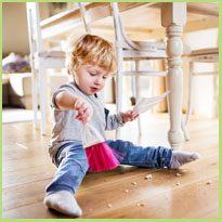 Tegels zijn bijna onverwoestbaar én makkelijk schoon te houden. Maar pas op: als je kindje iets laat vallen op de tegels kan er wel degelijk een breuk ontstaan. Om nog maar te zwijgen van het drama als je kind zelf een valpartij maakt. Want dat komt nogal hard aan op tegels. Een kleed kan het leed iets verzachten, maar het is niet de meest kindvriendelijke vloer.