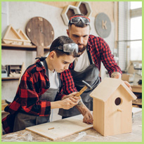 Boor en spijker de onderdelen van het huisje aan elkaar vast. Gebruik houtlijm om de verbindingen te versterken.