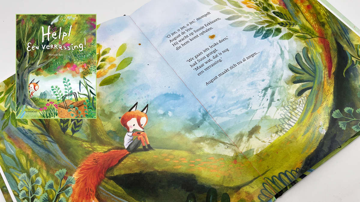 August houdt niet van verrassingen. Suus is dol op rennen, springen en wilde dingen doen, terwijl August het liefst leest, luiert en mooie dingen maakt. Augusts fantasie gaat met hem op de loop. Hij bedenkt de meest verschrikkelijke situaties waarmee Suus hem zou kunnen verrassen. Maar de werkelijkheid pakt anders uit… En net als je denkt dat het verhaal is afgelopen, weet Miriam Bos er nog één laatste draai aan te geven. Miriam Bos tekent en schildert een kleurig bos waar je direct zelf rond wilt lopen. Iedere spread lijkt wel een poster. De kleuren spatten van de bladzijden, net als de vriendschap tussen August en Suus. En één ding is duidelijk: Suus kent August beter dan hij denkt. Een verrassend prentenboekendebuut.