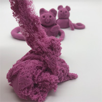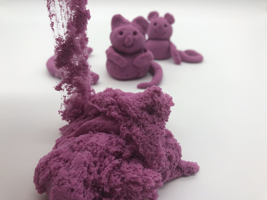 Flowtonia voelt erg prettig aan je handen en nodigt uit om in te blijven kneden. Je kunt het in allerlei figuurtjes boetseren en de substantie blijft dan ook prima aan elkaar verbonden. Maar zodra je het dan weer vastpakt of zacht aan trekt, dan laat het weer los en wordt het weer een losse substantie. Als een soort drijfzand, maar de werkelijke flow laat zich maar moeilijk omschrijven. Eigenlijk moet je dit gewoon zelf ervaren om er een goed beeld van te krijgen.