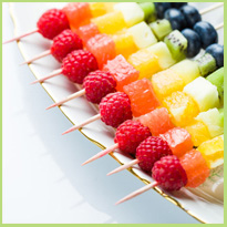 Met satéprikkers kan je natuurlijk nog meer leuks uithalen. Prik er diverse soorten fruit op en/of plakjes worst. Je kan deze prikkers leuk rangschikken op, bijvoorbeeld, een meloen of in piepschuim. Of zet ze in een ruime, glazen vaas. Je kan ze ook nog extra versieren door aan de bovenkant weer een leuke afbeelding te maken.