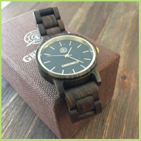 Dit keer had ik mijn oog laten vallen op een horloge. Niet zomaar een horloge maar een horloge van hout. Eigenlijk zijn houten horloges helemaal niet zo nieuw. Ik kan me nog herinneren dat zo’n 27 jaar geleden ik werkte als Assistent General Manager en we daar al houten horloges hadden als relatiegeschenk. Ze waren echter niet zo mooi als de houten horloges van tegenwoordig. Als ik over de site van Greenwatch surf, ben ik direct verkocht als ik deze Gold Lady (67,50 euro) zie, gemaakt van ebbenhout. Ik ben dol op ebbenhout. Ik heb hier twee houten stoeltjes staan van Mackintosch (mijn trots) die gemaakt zijn van ebbenhout. Het voordeel van deze houtsoort, is dat het zo licht is. Het is veel minder zwaar dan andere houtsoorten. Perfect materiaal dus voor een horloge en ook nog eens goed geschikt voor mensen met een huidallergie.