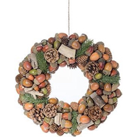 Met Kerst zie je ze wel vaker, maar je kunt dus al veel eerder beginnen met een gezellige krans aan de voordeur. Hoewel hij ook heel sfeervol staat voor de ramen, of gewoon ergens in de woonkamer of op kantoor. De krans is versierd met dennenappels, eikels, pompoentjes en diverse soorten bloemen en takken. De krans is Ø 34 cm en is gemaakt van polyetheen.