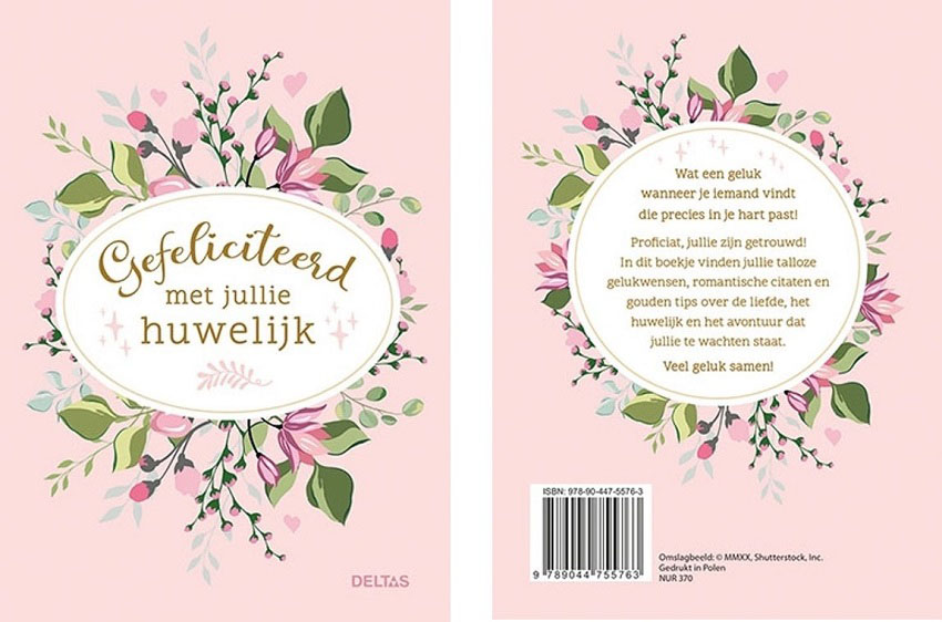 Misschien gaat er dit jaar of volgend jaar wel iemand in je vrienden- of familiekring trouwen en dan is het leuk om mochten ze een gevulde enveloppe vragen om er toch iets van een klein cadeautje bij te doen. Dit boekje bevat allerlei leuke uitspraken, gelukwensen en gouden tips waarover je zelf niet eens meer hoeft na te denken. Je kunt de namen van het bruidspaar in het boekje zetten en jouw/jullie eigen naam. Het boek is uitgebracht in mei 2020.