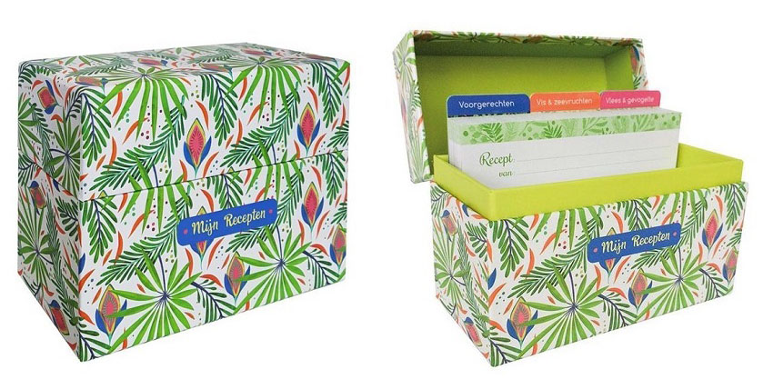 Regelmatig plaats ik een foto van de maaltijd op sociale media, en als iemand mij dan om het recept vraagt, maak ik een foto van het kaartje. Leuk voor de ander, maar ook voor mezelf. De kaartjes met recepten kun je ook nog eens onderverdelen in bijgeleverde categorie kaarten, zoals bijvoorbeeld vlees-en gevogelte, voorgerechten en vis & zeevruchten. Het receptendoosje is verkrijgbaar vanaf mei 2020.