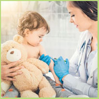 Blijf bij je kindje tijdens de inenting en neem hem op schoot, lichaamscontact geeft vertrouwen.