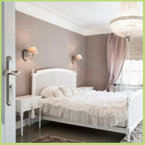 De basis van een romantische slaapkamer is een mooie vloer. Een mooie, warme houtlook doet het altijd goed. Denk aan eiken, mahonie of kersen. Grijstinten kun je maar beter vermijden. Ga je voor parket, laminaat of PVC? Je kunt ook kiezen voor tapijt. Dit is vooral geschikt als je nooit met schoenen in de slaapkamer loopt. Tapijt moet grondig schoongehouden worden om een mooie look te behouden. Als je daar niet tegenop ziet, voelt een dergelijke vloer heerlijk zacht en warm aan onder je voeten.