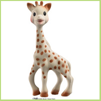 In haar geboorteland is Sophie de Giraf een begrip: maar liefst 95% van de Franse baby’s heeft zijn eigen Sophie. Vandaag de dag wordt Sophie nog steeds grotendeels met de hand vervaardigd volgens een met zorg bewaard fabrieksgeheim. Bovendien is Sophie de giraf gemaakt van 100% natuurlijk rubber en vrij van schadelijke stoffen, zoals BPA, PVC en Phthalates, dus voor baby’s een volledig veilige keuze.