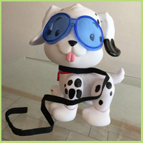 Dit schattige zwerfhondje kan zowel lopen als zwemmen, maar hij wil vooral heel graag dat jij hem adopteert! En daarvoor zit een speciaal kaartje in de doos, zijn adoptiebewijs. De puppy wordt geleverd met een vette blauwe zwembril, zijn adoptiebewijs en een zwart riempje. Wat ontbreekt zijn helaas de batterijen (drie stuks AAA 1,5V) die je echt nodig hebt om de pup in beweging te krijgen.