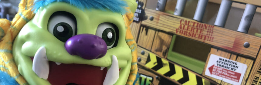 Als ik dit krat (of is het een gevangenis?) zie met dat enorme slot er omheen, moet ik gelijk lachen. Deze Pudge heeft mijn aandacht. Gelukkig blijkt het slot eenvoudig open te gaan met de bijgeleverde ‘koevoet’. Het gebruik van koevoet in plaats van een sleutel, begint al lekker fout en ik hou van fout. Lachspieren Als Crate creatures surprise-Pudge