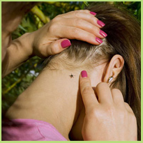 Controleer iedere avond onder de douche of in bad je lichaam op eventuele teken. Kijk vooral op plekken waar de huid dun of warm en vochtig is, zoals in liezen, knieholten, oksels en op de buik. Rond de plaats van de beet kan een rode, ringvormige huiduitslag ontstaan, die zich geleidelijk uitbreidt. Bij kinderen worden de teken vaak op het hoofd, in de hals, achter de oren en bij de haargrens gevonden.
