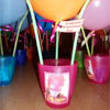 Bevestig vier rietjes met plakband aan de binnenkant van de bekertjes. Vul de bekertjes met de popcorn. Blaas de ballonnen zo op dat ze aan de bovenkant van de rietjes ertussen passen. Plak de rietjes ook hier vast met een plakbandje. Je kunt met de stift een leuke tekst of groet op de ballon schrijven of je kiest ervoor om een foto van bijvoorbeeld je kind of superheld(in) uit te printen en deze op het bekertje te plakken (zie foto).