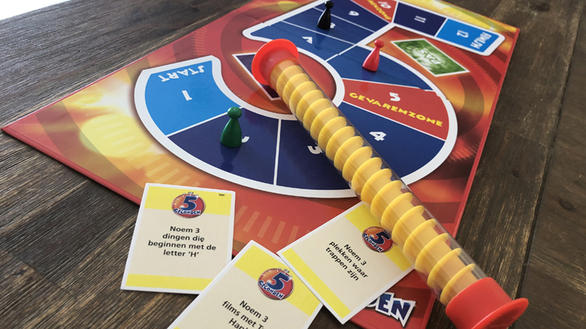 5 Seconden. Het razendsnelle woordspel voor snelle denkers met meer dan 700 grappige en originele vragen voor jong en oud! Je moet dus binnen 5 seconden drie antwoorden geven op een vraag. De vragen zijn niet moeilijk, want het gaat om de snelheid en niet zozeer om je kennis. Maar de ratelende timer, is onverbiddelijk! Want als hij stil valt, mag je niks meer zeggen en is je beurt voorbij.